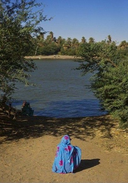 امرأة تجلس على ضفاف النيل طلبًا للسكينة. المصدر: سودان هوب