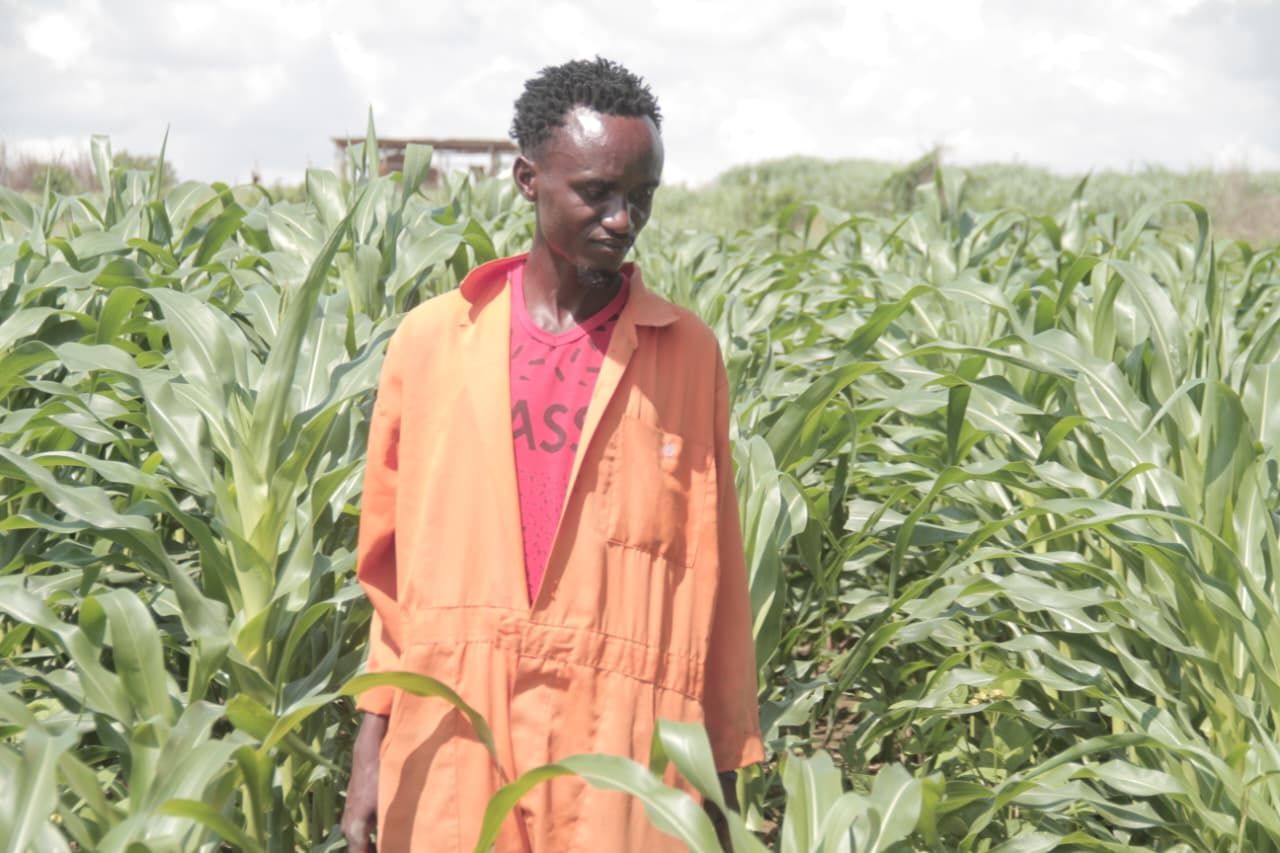 Emmanuel Kenga, a former boda boda rider, checks his maize farm in Shakahola. Photo Courtesy Teryani Mwadzaya.
