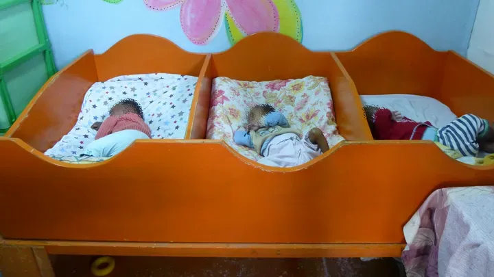 Wet clothes of infants hanging on a thread just outside the playing room. Source: Sele Enat Mahber
