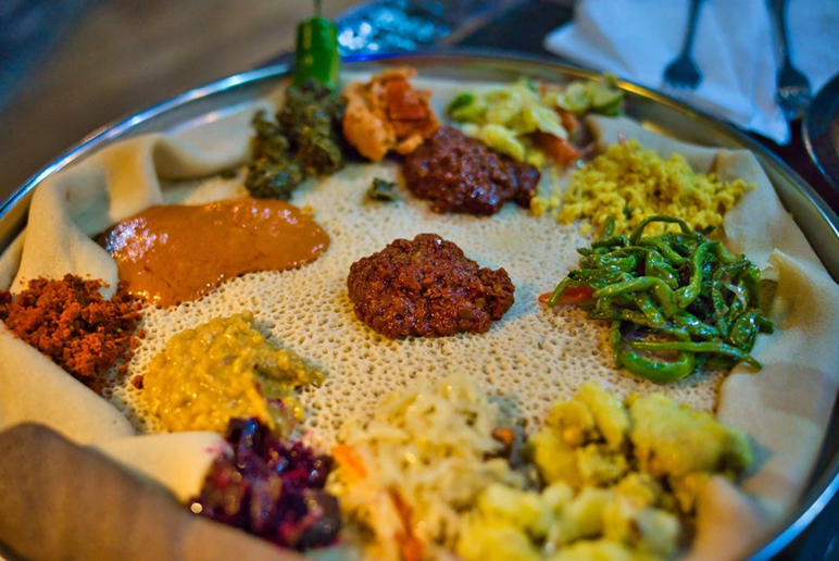 Beyaynetu, popular Ethiopian dish served with varieties of vegan curries (photo source: Calgary Food - Facebook)