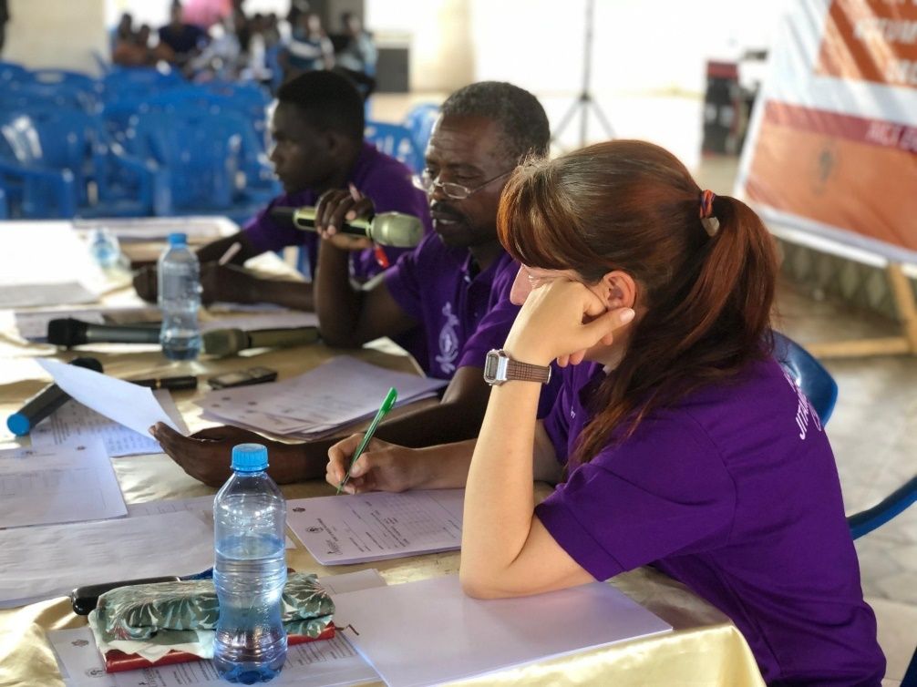 Judges listen to participants during the audition round at AICT Bujora, where creativity and understanding of SRHR themes were both assessed. Photo by Philipo Florian.