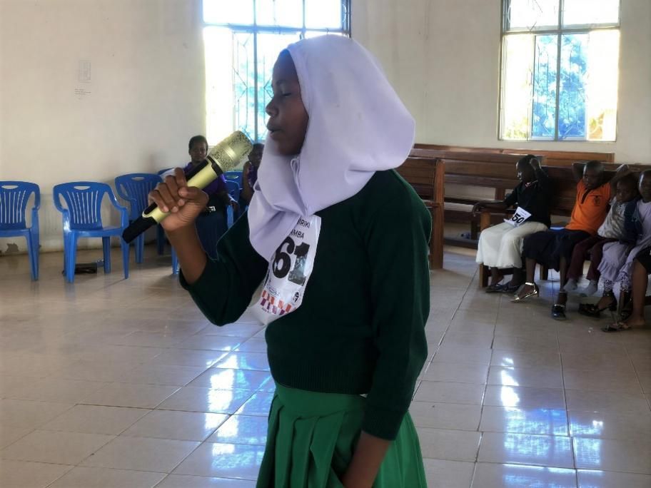 A participant sings her audition piece with full emotion as judges look on. Photo by Philipo Florian, AICT Bujora.
