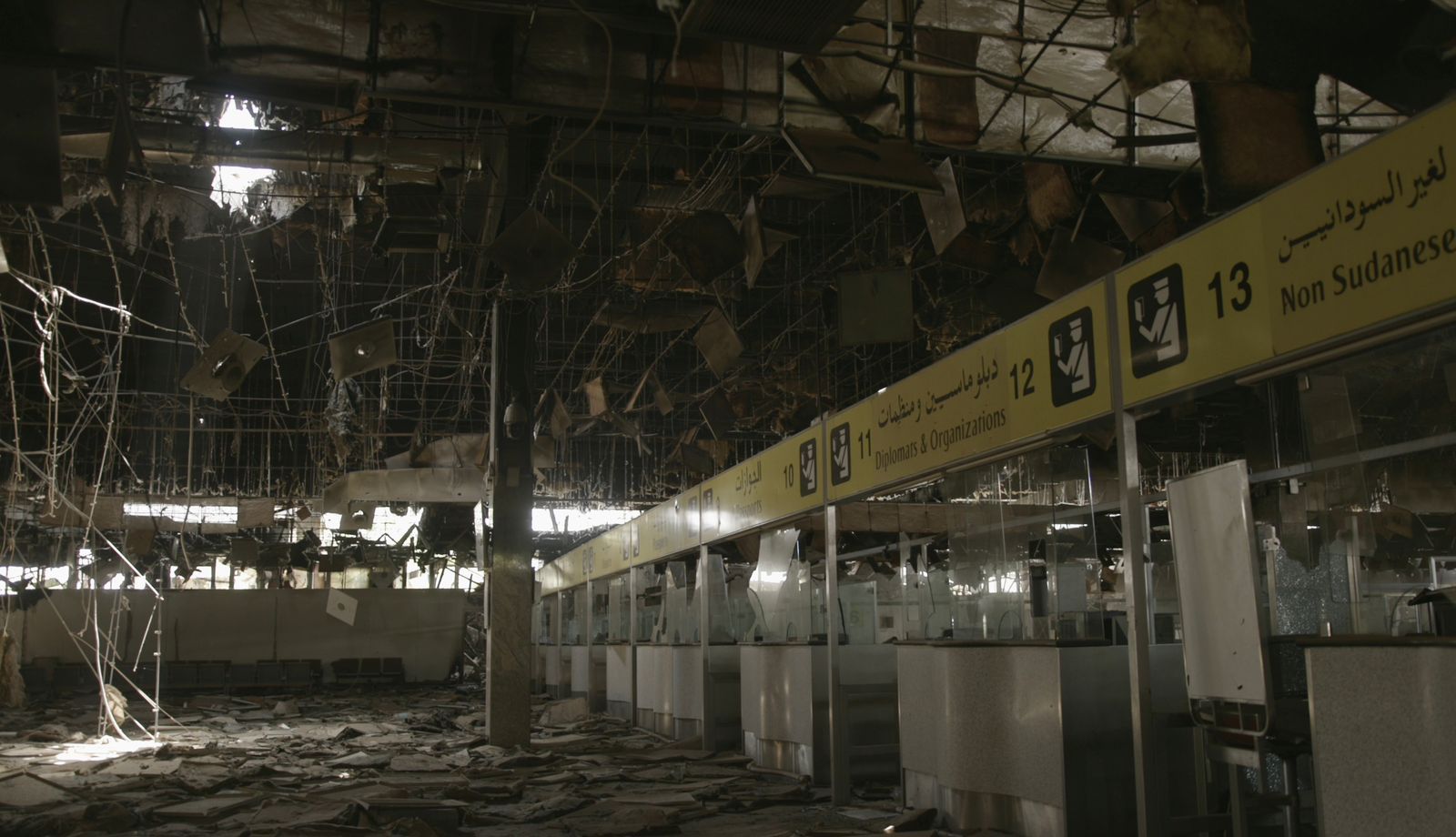 A photo showing the destruction inside Khartoum Airport (taken by Al-Samwal)